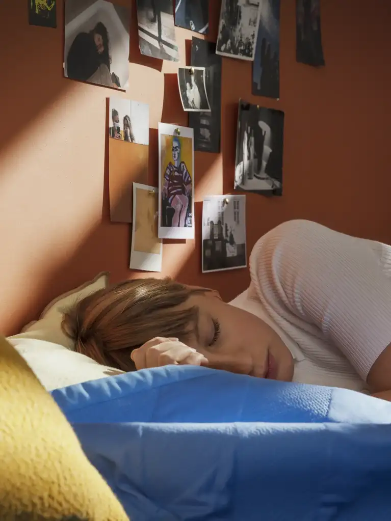- Als je toch een lichtbron nodig hebt, kies dan voor warm, gedempt licht, dat de slaap minder verstoort.