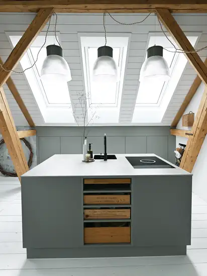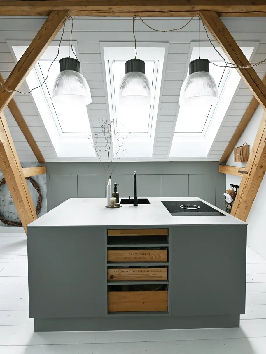 VELUX dakramen brengen daglicht in je keuken en verbeteren de ventilatie en energie-efficiëntie. Goede ventilatie is belangrijk in een ruimte zoals de keuken, waar na het koken frisse lucht nodig is.