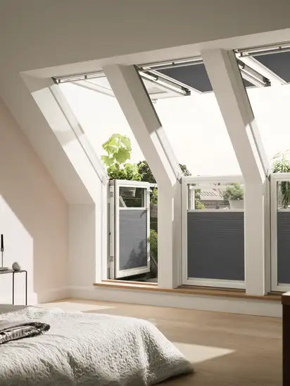 Creëer een buitenruimte op plekken waar je het niet had verwacht. Open het bovenste gedeelte voor een panoramisch uitzicht. En open beide elementen voor een deuropening naar buiten.